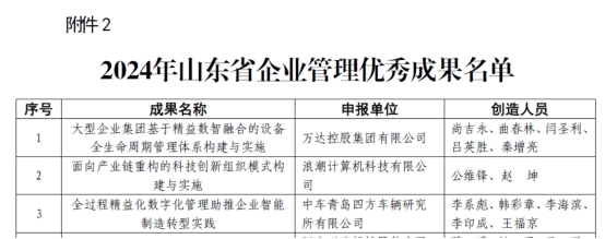 2024 年山东省企业管理优秀成果